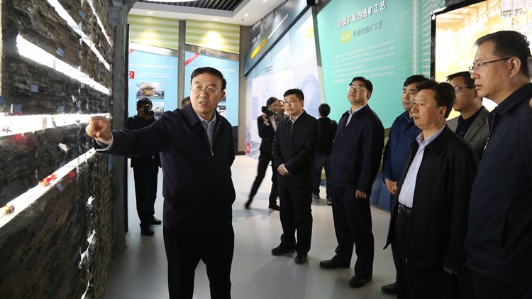 李沛興先后深入尾礦庫、停機(jī)坪、1190主平硐口、科技中心、員工公寓等地調(diào)研。在尾礦庫,李沛興詳細(xì)詢問了尾礦庫庫容、服務(wù)年限、防洪標(biāo)準(zhǔn)、安全保障和尾礦庫在線監(jiān)測系統(tǒng)運(yùn)行情況等內(nèi)容,并與陪同人員就尾礦庫的安全管理工作做了交流。在停機(jī)坪,李沛興認(rèn)真聽取了建設(shè)內(nèi)容、資源儲量和建設(shè)成果的詳細(xì)匯報(bào)后饒有興趣地說:“從高處鳥瞰,礦區(qū)就像一個聚寶盆,生產(chǎn)廠房、員工公寓、體育場館等建筑物布局科學(xué)合理,其外觀造型和色彩與周邊環(huán)境自然融合,這樣的礦區(qū)是非常少見的”。在采礦中控室,李沛興通過監(jiān)控視頻詳細(xì)查看了井下采礦場景和各運(yùn)輸中段生產(chǎn)情況,在科技中心5D影視廳,李沛興認(rèn)真觀看了《金徽礦業(yè)郭家溝鉛鋅礦采礦篇》,并指出:“完善的井下六大系統(tǒng)對礦山企業(yè)來說非常重要,金徽股份在這方面做得比較到位,應(yīng)該組織省內(nèi)其他企業(yè)來多看、多學(xué)習(xí)”。隨后,在員工公寓調(diào)研過程中,陪同人員重點(diǎn)就企業(yè)文化建設(shè)和公司關(guān)心關(guān)愛員工的一系列舉措做了全面匯報(bào),期間,李沛興還向一名員工了解了公司提供的免費(fèi)就餐、免費(fèi)住宿和五險(xiǎn)一金等員工享受的福利待遇情況。