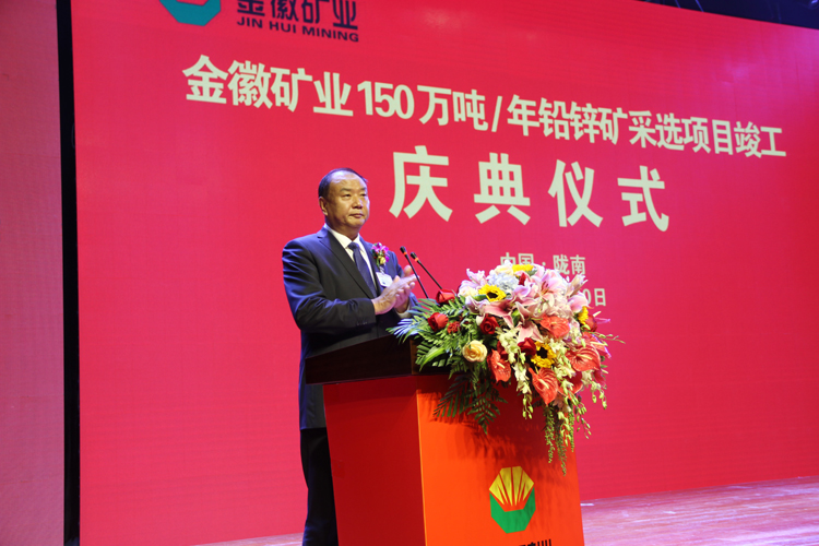 慶典儀式上,金徽股份董事長耿增輝首先登臺(tái)致辭。耿董事長代表金徽股份對(duì)各位嘉賓、各位朋友的光臨,表示最熱烈的歡迎!對(duì)長期以來給予金徽股份關(guān)心、關(guān)愛和幫助的社會(huì)各界人士致以最誠摯的感謝。其次,耿董事長從金徽股份的建設(shè)理念、建設(shè)歷程、建設(shè)規(guī)模等方面全面介紹了金徽股份整體情況;從采礦、選礦、尾礦、安全保障、環(huán)境保護(hù)、供水供電、綠化旅游和行政服務(wù)等方面介紹了八大工程;同時(shí),耿董事長用“五個(gè)注重”:注重環(huán)境保護(hù)、注重科技創(chuàng)新、注重安全保障、注重關(guān)愛員工、注重社會(huì)責(zé)任介紹了金徽股份在項(xiàng)目開發(fā)建設(shè)過程中的具體做法。耿董事長強(qiáng)調(diào):金徽股份150萬噸/年鉛鋅礦采選項(xiàng)目的順利建成,是得益于亞特集團(tuán)超前理念的引領(lǐng),得益于各合作單位的鼎力配合,得益于社會(huì)各界朋友的大力支持。
