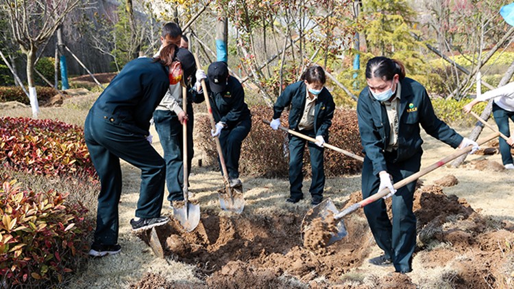 植樹活動(dòng)現(xiàn)場(chǎng),大家在做好疫情自我防護(hù)的同時(shí),干勁十足。他們?nèi)迦俗园l(fā)成組,相互配合、默契協(xié)作,或扶樹填坑、或揮鍬培土、或提桶澆水,每個(gè)環(huán)節(jié)銜接有序,合力栽下一棵棵樹苗,也共同播下疫散春來、華枝春滿的勃勃生機(jī)。經(jīng)過幾個(gè)小時(shí)的努力,一株株新栽種的冬青、石楠、廣玉蘭、雪松等樹木迎風(fēng)而立,為金徽股份增添了一片片濃濃春意。