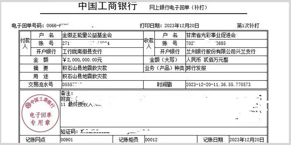12月18日凌晨,6.2級(jí)地震突襲甘肅省臨夏州積石山縣,災(zāi)情牽動(dòng)著全國(guó)人民的心。金徽正能量公益基金會(huì)通過甘肅省光彩事業(yè)促進(jìn)會(huì)為積石山地震災(zāi)區(qū)捐款200萬元,支持受災(zāi)地區(qū)緊急救援、受災(zāi)群眾安置和災(zāi)后恢復(fù)重建等工作。