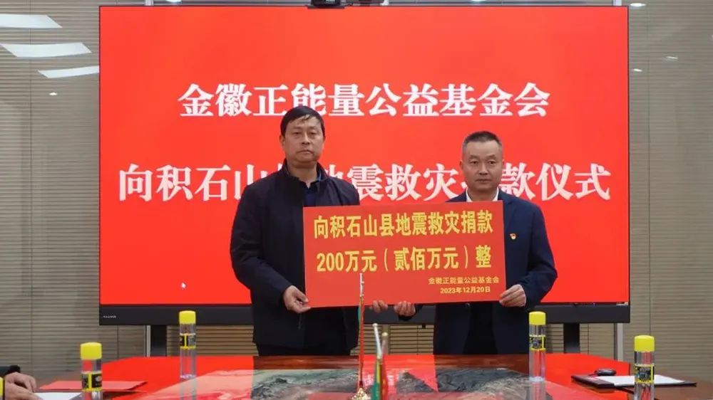 牽動(dòng)全國人民的“甘肅臨夏積石山縣6.2級(jí)地震”發(fā)生后,金徽正能量公益基金會(huì)率先向甘肅臨夏積石山地震災(zāi)區(qū)捐款200萬元,支持受災(zāi)地區(qū)緊急救援、受災(zāi)群眾安置和災(zāi)后恢復(fù)重建等工作。由金徽股份參與發(fā)起成立的金徽正能量公益基金會(huì),持續(xù)聚焦精準(zhǔn)扶貧脫貧、為各種災(zāi)難、貧困學(xué)子、貧困群眾、美麗鄉(xiāng)村建設(shè)、公益人才培養(yǎng)提供必要援助,為中國公益慈善事業(yè)的健康發(fā)展做出應(yīng)有貢獻(xiàn)。2023年,金徽股份向金徽正能量公益基金會(huì)捐款800萬元,助力防災(zāi)減災(zāi)、愛心助學(xué)和鄉(xiāng)村振興等。