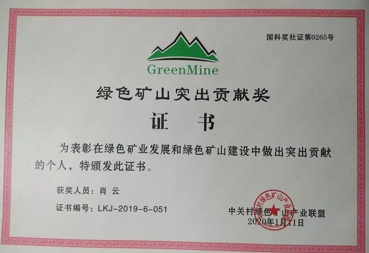 金徽礦業(yè)榮獲首屆全國(guó)綠色礦山突出貢獻(xiàn)獎(jiǎng);金徽礦業(yè)副總經(jīng)理、院士專(zhuān)家工作站核心成員、國(guó)家科技進(jìn)步獎(jiǎng)獲得者、全國(guó)勞模肖云教授榮獲首屆綠色礦山突出貢獻(xiàn)獎(jiǎng)(個(gè)人)。